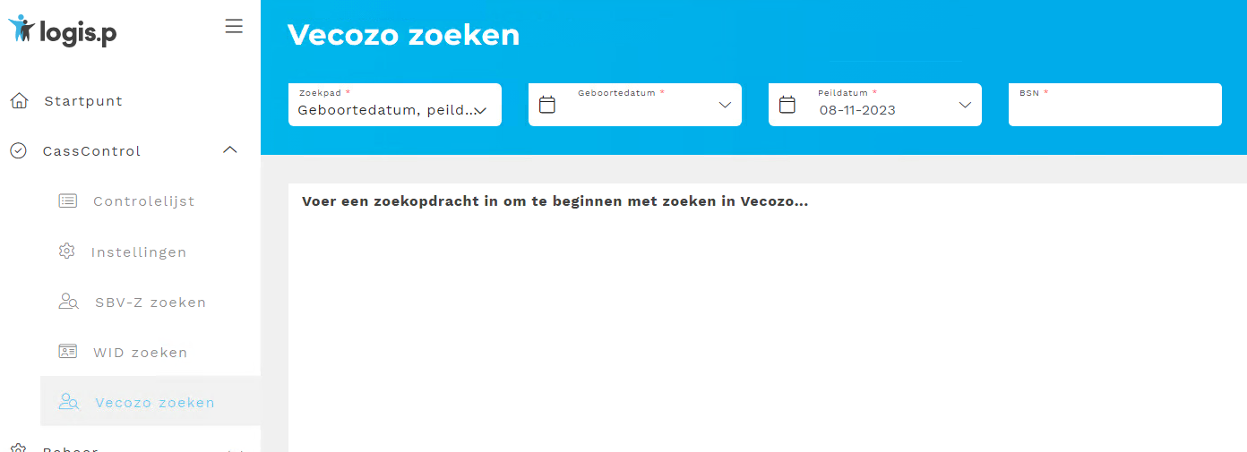 Ga hiervoor naar het menu CassControl > Vecozo zoeken.